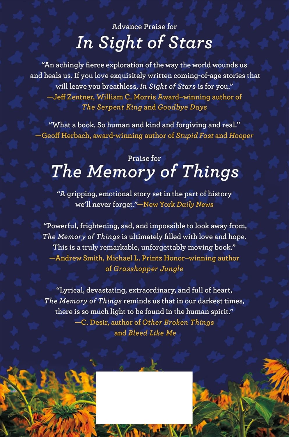 “An intense, sometimes graphic, totally heartbreaking portrait of a character who will keep pages turning.” – Booklist, Starred Review”An achingly fierce exploration of the way the world wounds us and heals us. If you love exquisitely written coming-of-age stories that will leave you breathless, In Sight of Stars is for you.” – Jeff Zentner, William C. Morris award-winning author of The Serpent King and Goodbye DaysSeventeen-year-old Klee’s father was the center of his life. He introduced Klee to the great museums of New York City and the important artists on their walls, he told him stories made of myths and magic. Until his death. Now, forced to live in the suburbs with his mom, Klee can’t help but feel he’s lost all the identifying parts of himself―his beloved father, weekly trips to the MoMA, and the thrumming energy of New York City. That is until he meets wild and free Sarah in art class, with her quick smiles and jokes about his “brooding.” Suddenly it seems as if she’s the only thing that makes him happy. But when an act of betrayal sends him reeling, Klee lands in what is bitingly referred to as the “Ape Can,” a psychiatric hospital for teens in Northhollow. While there, he undergoes intensive therapy and goes back over the pieces of his life to find out what was real, what wasn’t, and whether he can stand on his own feet again. Told in alternating timelines, leading up to the event that gets him committed and working towards getting back out, Gae Polisner’s In Sight of Stars is a gorgeous novel told in minimalist strokes to maximal effect, about what makes us fall apart and how we can put ourselves back together again.