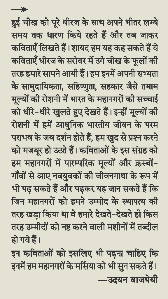 इन कविताओं को इसलिए भी पढ़ना चाहिए कि इनमें हम महानगरों के मर्सिया को भी सुन सकते हैं।